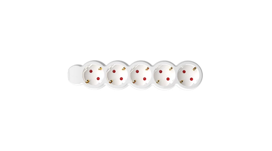 Az NV 5/WH Hálózati elosztó fehér színű, 5 db aljzattal és 1,5 m hosszú H05VV-F 3G1,0 mm2 kábellel felszerelt. A biztonságos használat érdekében gyermekvédelemmel ellátott. Maximum 3500 W-ig terhelhető.