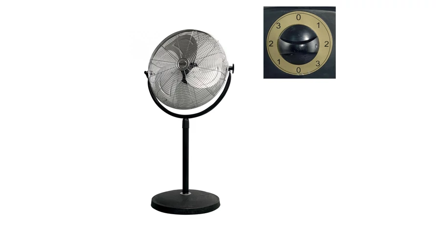 A 45 cm lapátátmérővel és fém lapátokkal ellátott ventilátor kiváló teljesítményt nyújt. A három fokozatban szabályozható teljesítmény és az állítható fejdőlésszög (90°) lehetővé teszi a légáramlás testreszabását, így mindig a kívánt hűsítő hatást érheti el. A ventilátor hangteljesítményszintje 63 dB(A), így meglehetősen csendes működést biztosít, miközben maximális légtömegárama kb. 89 m³/perc, ami garantálja a gyors és hatékony légmozgatást.