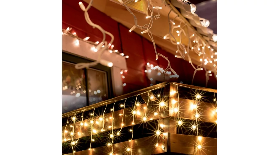 A KKF 308/WW fényfüggöny a melegfehér csillogó LED fényével gyakori eleme a pompás esküvőknek és az ünnepi és egyéb rendezvényeknek egyaránt. Magas fényével igazán színvonalassá tehetjük a jeles eseményeket, születésnapokat, kerti ünnepségeket, fogadásokat.A 300 db melegfehér LED fény diszkréten világíthatja meg az Ön otthonát és ezáltal meghitt, hangulatot teremt kül- és beltéren.Ajánljuk továbbá a bensőséges karácsonyi időszakra családi házak, lakások erkélyeire, üzletek, irodák, kirakatok ékesítésére.A fényfüggöny hossza 10 m, amely 8 programos memóriával rendelkezik és választható a tetszés szerinti folyamatos, vagy ismétlődő időzítés. A fényfüggönyt diszkrét, fehér színű vezeték köti össze. Tartozéka továbbá egy IP44-es kültéri kivitelben kapható hálózati adapter.