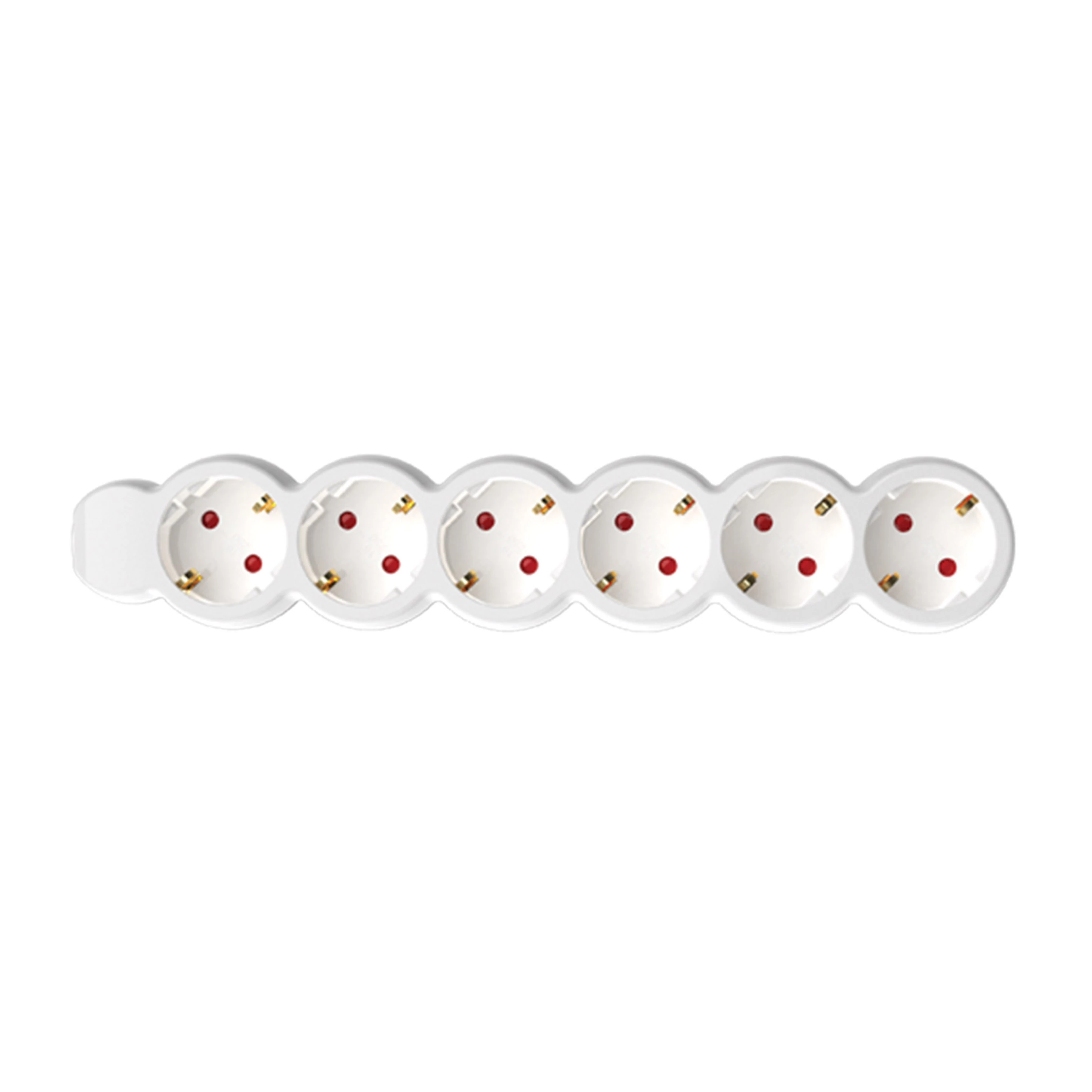 Az NV 6-5/WH/1,5 Hálózati elosztó fehér színű, 6 db aljzattal és 5 m hosszú H05VV-F 3G1,5 mm2 kábellel felszerelt. A biztonságos használat érdekében gyermekvédelemmel ellátott. Maximum 3500 W-ig terhelhető.