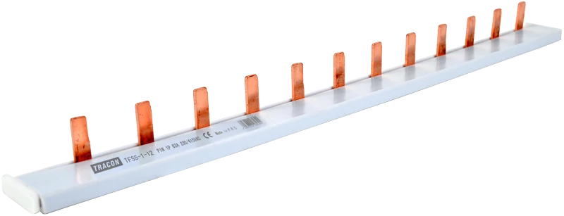 Tracon Soroló sín - csapos kivitelű 1P, 12modul, 215mm max.63A, 230/400VAC TFSS-1-12
