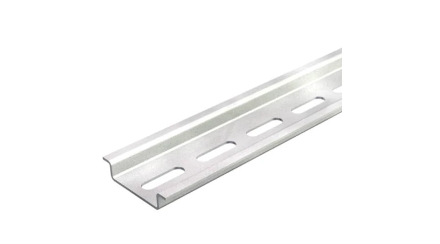 Sorolható készülékek rögzítésére szolgáló 35x7,5mm méretű "kalap" formájú galvanizált acél sin. Felerősítésük csavarral történik, ezért furattal, a hosszabb méretűek pedig ovális lyuksorozattal rendelkeznek.