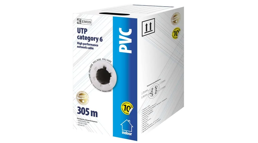 UTP CAT6 Fali internet kábel 23AWG réz vezeték Emos S9131 305m/dob