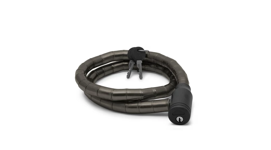 Kerékpár görgős lakat (kábelzár). A bevont acélkábel ellenállóbb a vágó támadásokkal szemben. Minőségi zárszerkezet, 2 db kulccsal.