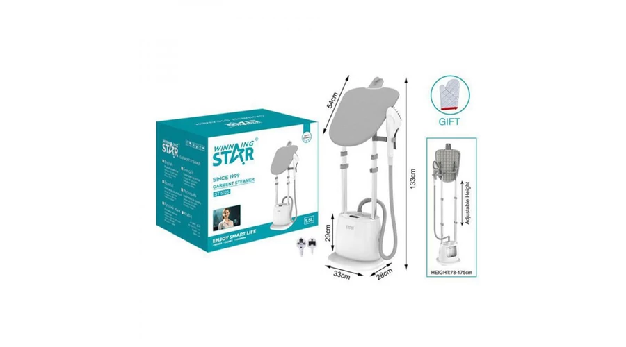 A WinningStar - Álló ruhagőzölő állomás egy praktikus és nagy teljesítményű készülék, amely ideális ruhák hatékony és gyors gőzöléséhez, ránctalanításához és frissítéséhez. A 1,5 literes víztartály nagy kapacitást biztosít, lehetővé téve, hogy hosszabb ideig használhassa a készüléket anélkül, hogy gyakran újra kellene töltenie. A 1580 W teljesítmény köszönhetően gyorsan felmelegszik, és erős gőzáramot biztosít, amely kisimítja a gyűrődéseket és felfrissíti a ruhákat anélkül, hogy szükség lenne vasalódeszkára. Kiválóan alkalmas kényes, érzékeny anyagok, mint például: selyem, pamut vasalására. Eergonomikus kialakítással rendelkezik, amely kényelmes használatot biztosít. A vállfa stabilan tartja a ruhákat a gőzölés közben, így egyszerűbbé teszik a folyamatot. Az eszköz többféle anyaghoz is alkalmas, beleértve a finom textíliákat és a vastagabb anyagokat egyaránt.