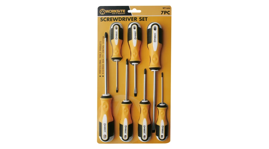 WORKSITE WT1606 csavarhúzó készlet, 7db, lapos és Phillips csillag fejek, mágneses, edzett WT1606